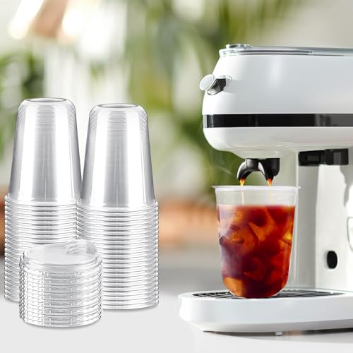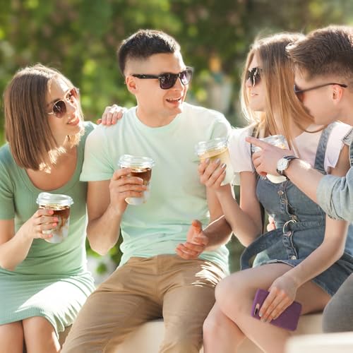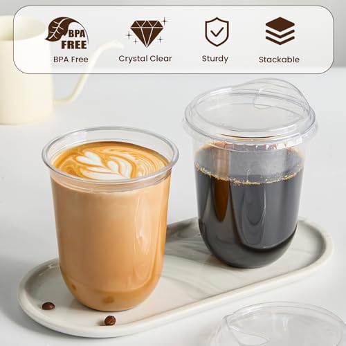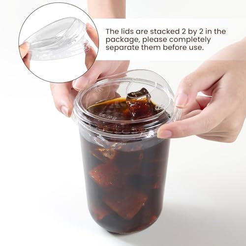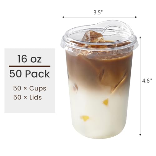 Qeirudu 16 Oz Round Bottom Clear Plastic Cups with Strawless Sip Lids, 50 Pack Disposable Iced Coffee Cups To Go Cups for Cold Drinks, Smoothie, Juice, Milkshake