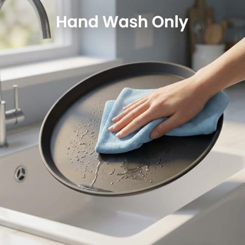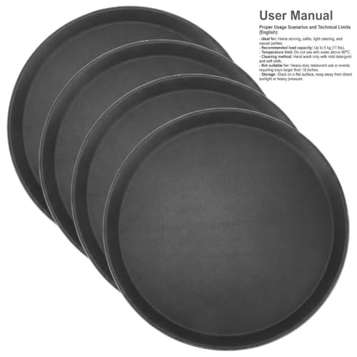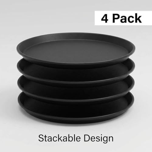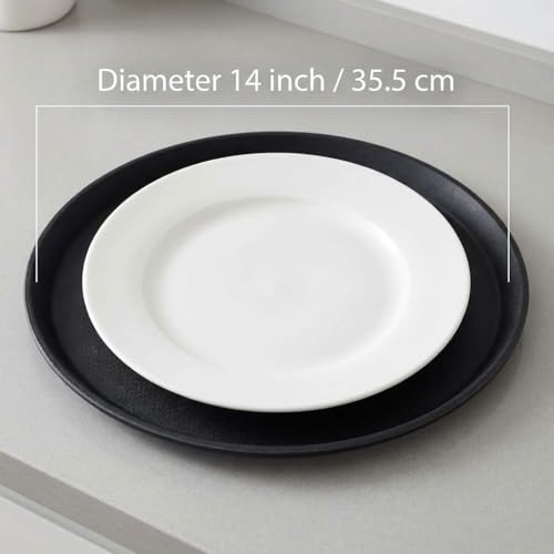 QWORK 14-Inch Round Non-Slip Serving Tray Set – 4Pack Rubber Surface Drink & Meal Carrier for Home, Café & Catering