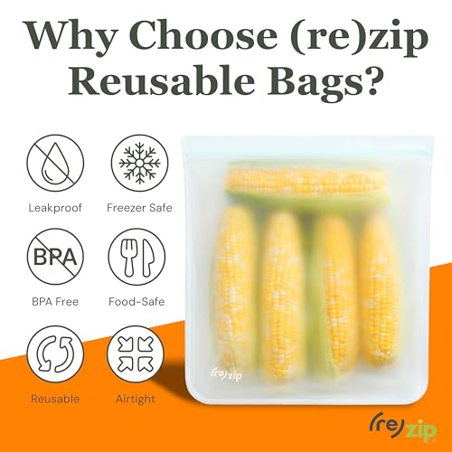 (re) zip Gallon Reusable Storage Bags, BPA-Free, Leakproof, Food-Grade 100% Food-Safe PEVA, for Food Storage and Freezer Use, Holds 16 cups | 128 fl oz, 4-Pack (Clear)
