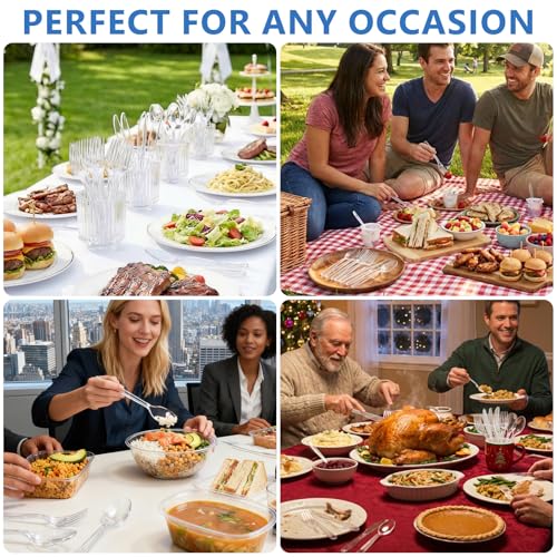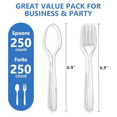 SACATR 500 Count Plastic Silverware Heavy Duty -250 Forks, 250 Spoons,BPA-Free,Heat Resistant Disposable Plastic Spoons Bulk, Solid Durable Premium Cutlery for Parties, Events and Everyday Use