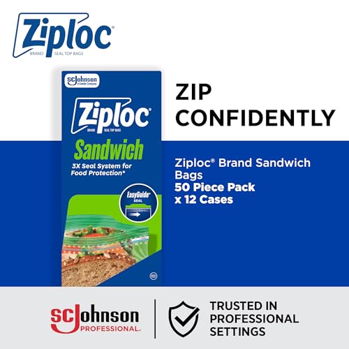 SC Johnson Professional Ziploc Sandwich and Snack Bags, 12 Boxes x 50 Bags, 600 Total Bags
