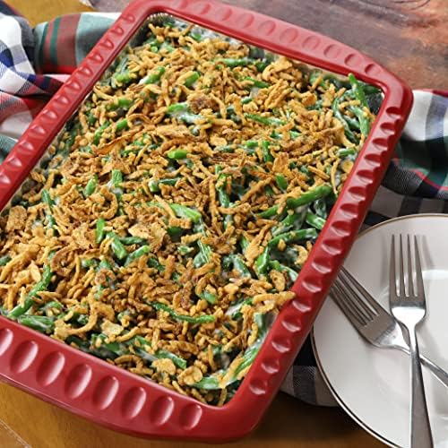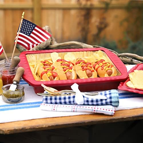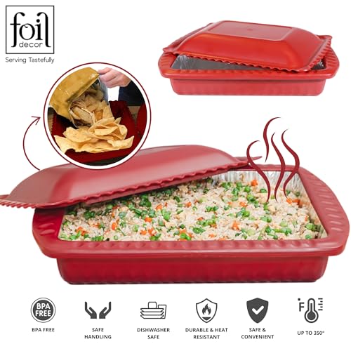 Serving and Casserole Carrier for 9x13x2 Foil Pans, Heat Resistant w/ Handles, Lid Locks in Place for Safe and Easy Carrying, Lid Doubles as a Serving Dish, 1 Aluminum Pan included, BPA Free Made in USA-Red