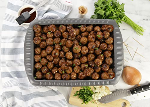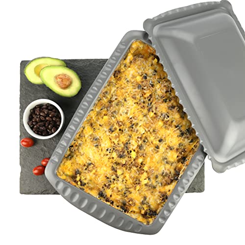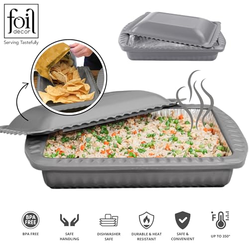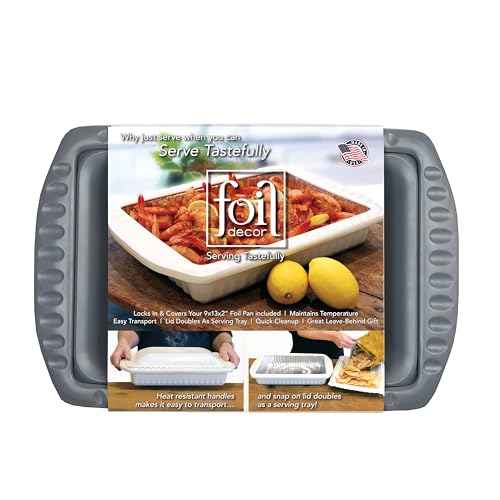 Serving and Casserole Carrier for 9x13x2 Foil Pans, Heat Resistant w/Handles, Lid Locks in Place for Safe and Easy Carrying, Lid Doubles as a Serving Dish, 1 Foil Pan included, BPA Free - Made in USA -Charcoal