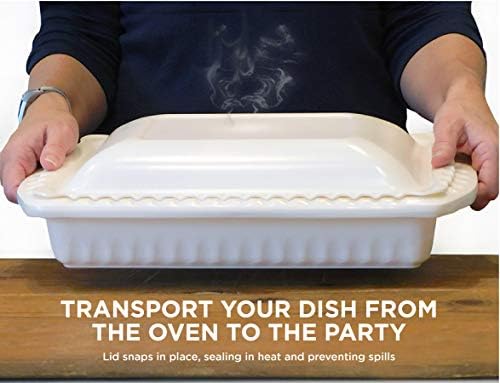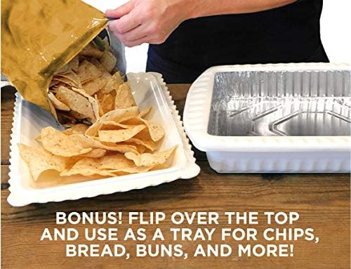 Serving and Casserole Carrier for 9x13x2 Foil Pans, Heat Resistant w/Handles, Lid Locks in Place for Safe and Easy Carrying, Lid Doubles as a Serving Dish, 1 Foil Pan included, BPA Free Made in USA - White