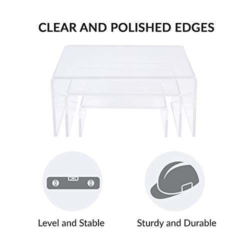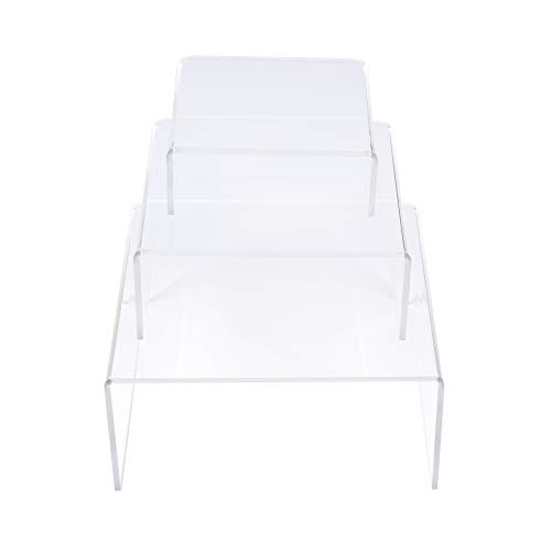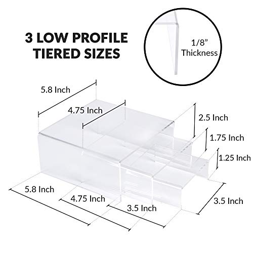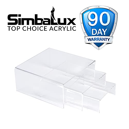 SimbaLux Acrylic Display Risers Clear Stand Set of 3 Small Low Profile Tiered for Showcasing Food, Cupcake, Dessert, Candy, Jewelry, Figurines, Photos, Retail & Home Decoration, Durable & Steady