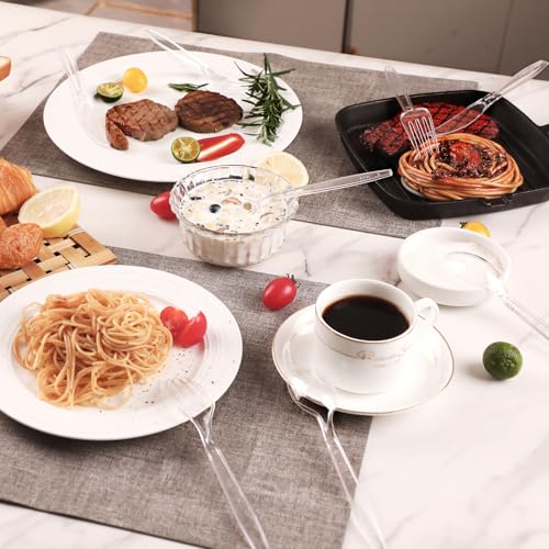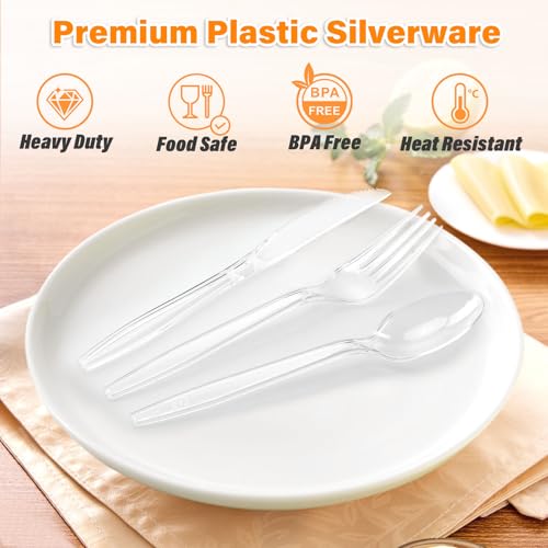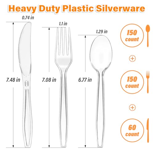 SIUQ 360 Count Heavy Duty Clear Plastic Silverware, 150 Forks, 150 Spoons, 60 Knives, Disposable Plastic Utensils Set, Plastic Cutlery Set, Plasticware Bulk for Parties, Catering, Picnic