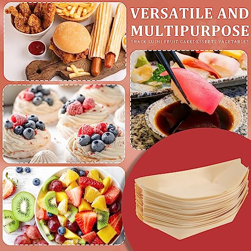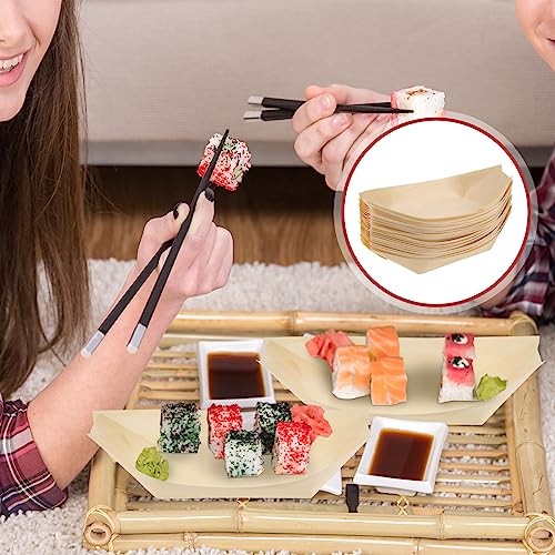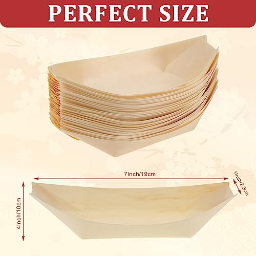 Sliner 300 Pcs Disposable Wood Boat Plates Dishes Food Boats Disposable Wooden Appetizer Sushi Plates Bulk for Catering and Home Use(7 Inch)