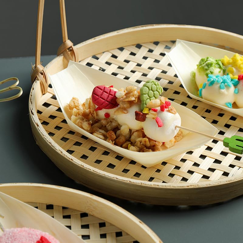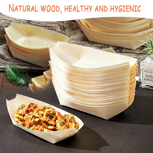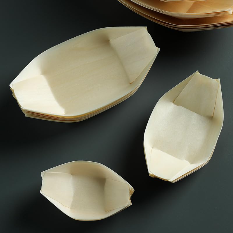 Small Disposable Bamboo Plates - 4 Inch Sushi Boat Wood Plates for Food, Bamboo Appetizer Plates for Fries and Snacks - Perfect for Picnics, BBQ, and Movie Nights - Eco-Friendly (100pcs)