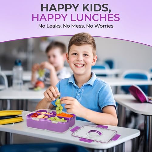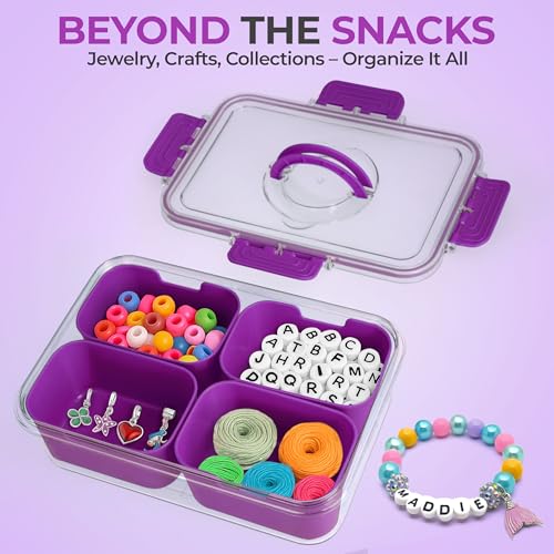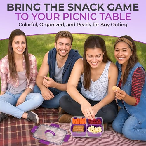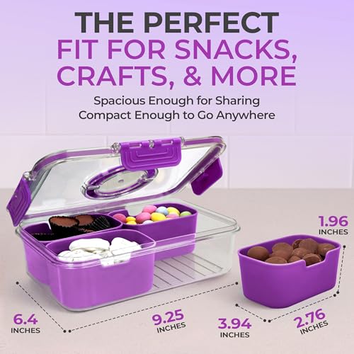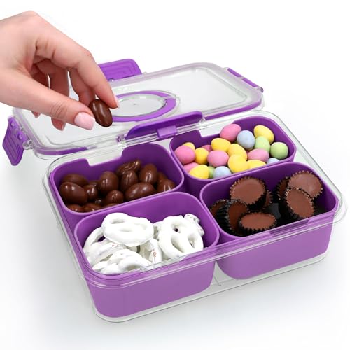 Snackle Box Container with Lid- Travel Charcuterie Box with Handle - Organizer for Candy, Fruit, Nuts, Veggies, Snacks, Beach Essentials, Portable Lunch Box (Purple, Small)