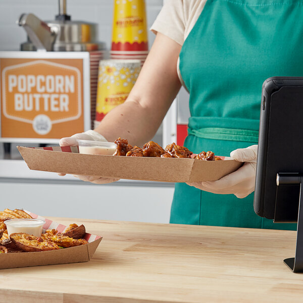 Quantity: 250/Case | Shipping Weight: 21.65 lb. | Length: 10 1/2 Inches | Width: 7 1/2 Inches | Height: 1 1/2 Inches | Color: Red | Design: Printed Red Check | Features: Made in America Nestable No PFAS Added Recyclable | Material: Paper | Number of Compartments: 1 Compartment | Shape: Rectangle | Type: Carrying Trays