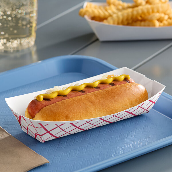Southern Champion 7" x 2 3/4" x 1 1/2" Red Check Paper Hot Dog Tray - 1,000/Case