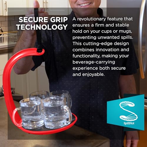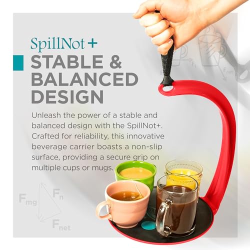 SpillNot+ - The SpillNot Portable Handheld Beverage Carrier, Nonspill Drink Tray, Innovative, Easy to Use - Red