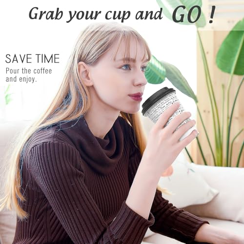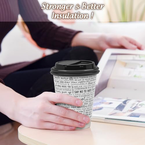 SPRINGPACK Disposable Paper Coffee Cups with Lids, 100 pack 12 oz Double Wall Paper Cups, Insulated Takeaway To Go Hot Drinking Cups for Home Office Travel Wedding Party Supply