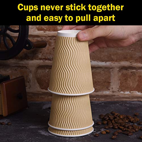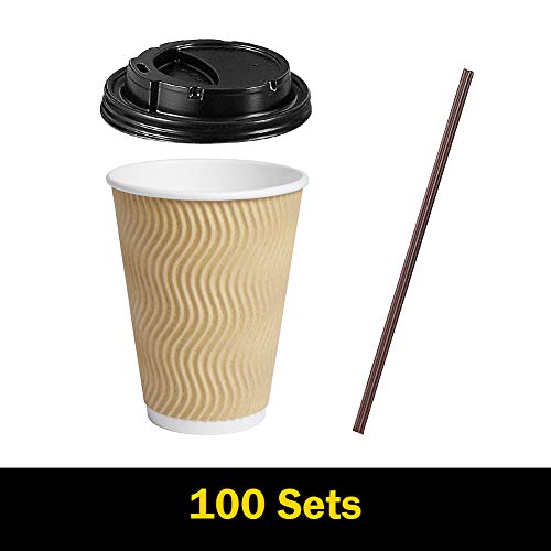SPRINGPACK Disposable Paper Coffee Cups with Lids, 100 pack 12 oz Ripple Wall Insulated To Go Coffee Cups for Hot/Cold Beverage, Recyclable Takeaway Drinking Cups for Home Office Cafe Party