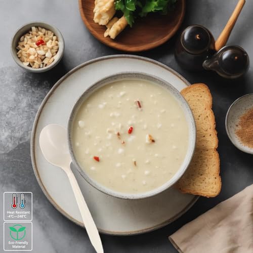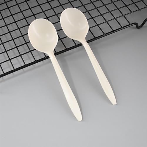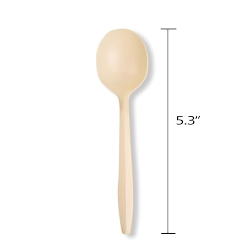 T Legend Eco-Friendly 50 Pack Cornstarch Soup Spoons, Ivory Large Capacity 5.3" Disposable Spoons for Hot Soup Milk Shake Salad etc.