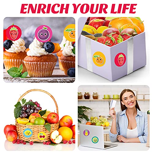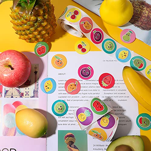 Tenare 500 Pcs Fruit Roll Stickers, Lovely Apple Orange Banana Pear Grapes Stickers for Teachers Classroom Rewards, Scrapbooking, DIY Crafts