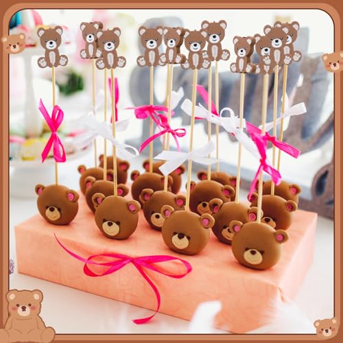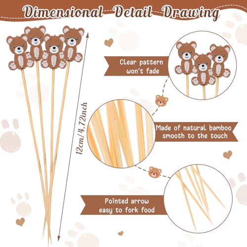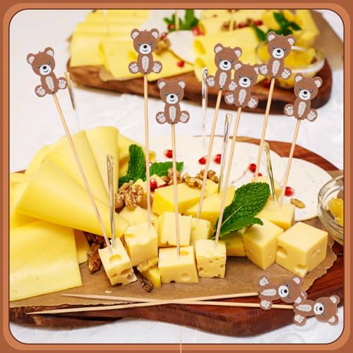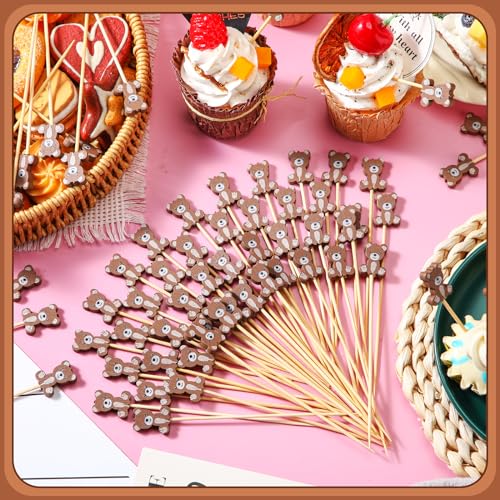 Tioncy 100 Pcs Bear Cocktail Picks 4.7 Inch Bear Cocktail Toothpicks for Appetizers Decorative Bamboo Skewers Party Decorations Fruit Food Picks for Party Supplies