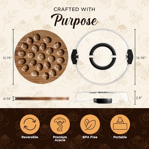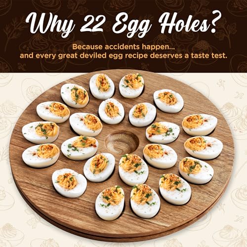 Trauful Deviled Egg Carrier with Lid and Handle | Reversible | Wooden Portable Deviled Egg Containers with Lid for Party Travel | Covered Platter Tray Holder | Holds 22 Eggs, Acacia Wood