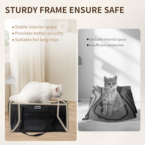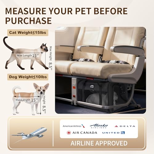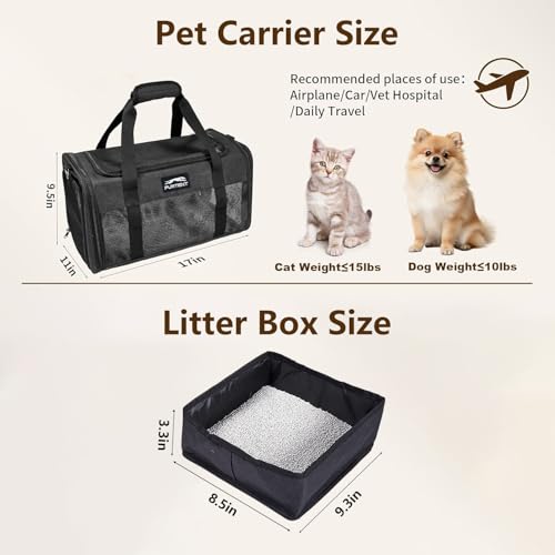TSA Approved Pet Carrier for Small Cats and Puppies, Soft-Sided and Foldable, Cat and Dog Carrier Fits Pets Up to 15 lbs, Durable Portable Travel Bag with Litter Box (Black, Litter Box & Leash Set)