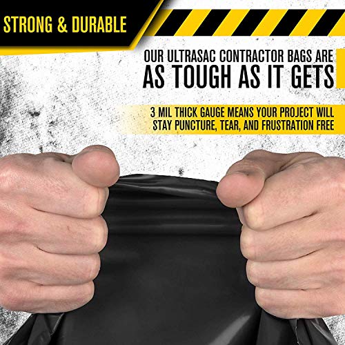 Ultrasac Heavy Duty 55 Gallon Contractor Bags - (40 Count, 3 MIL) - 38" x 58" - Large Black Plastic Trash Can Liners - 55-60 Gal Garbage Bag Drum Liners for Outdoor & Contractors