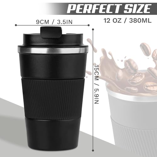 Vacuum-Insulated Stainless Steel Travel Coffee Mug, Leak-Proof Reusable Coffee Cup with Lid - Keep Hot & Cold Drinks for Hours, Durable Insulated Tumbler for Men & Women(3rd-Black, 12OZ)