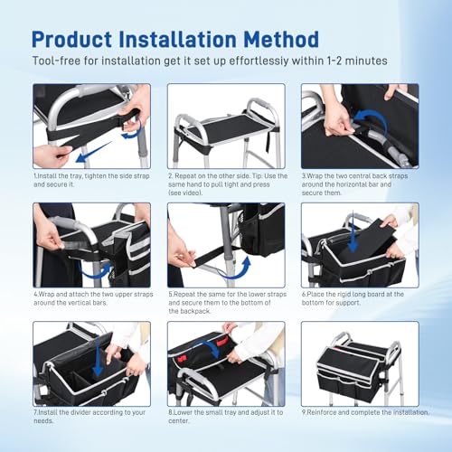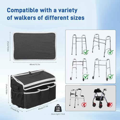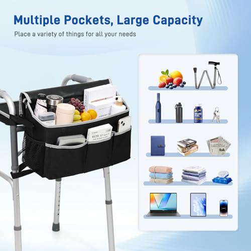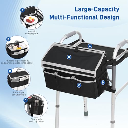 Walker Bags for Folding Walker | Upgrade Accessories - Basket with Cup Holder and 2 Trays for Seniors Detachable to Carry Things | Large Capacity Carry Storage Carrier Tote