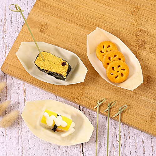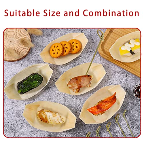 WATHFKCU 3.5 Inch Disposable Bamboo Wooden Sushi Boat Plate Bamboo Appetizer Plates Dishes Sushi Serving Tray Wooden Leaf Boat with 100Pcs Bamboo Picks