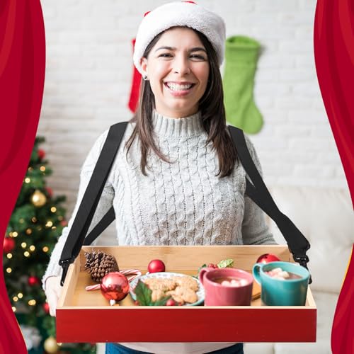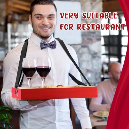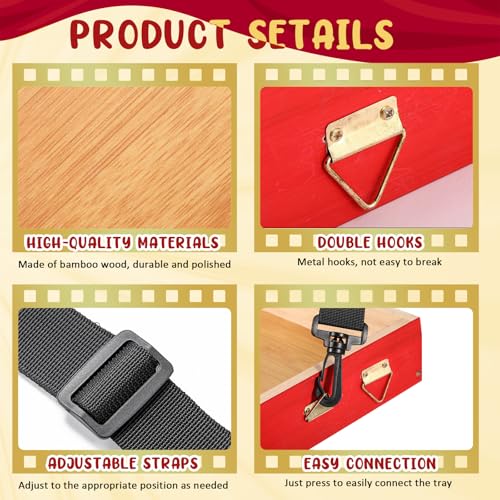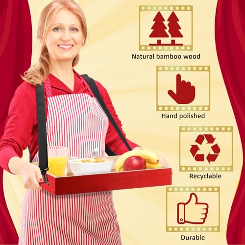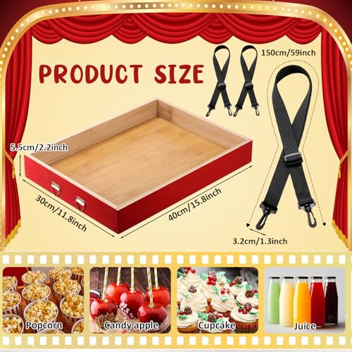 Wooden Snack Trays with Strap 15 x 11 x 2 Inch Movie Night Party Serving Trays Usherette Popcorn Drink Vending Concessions Tray Beverage Carrier for 20's Theme Costume Carnival Prop(Red)