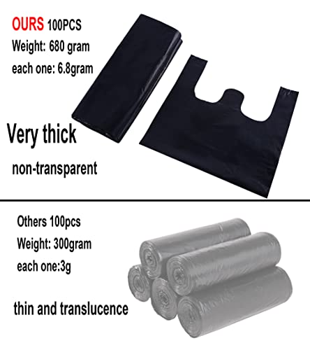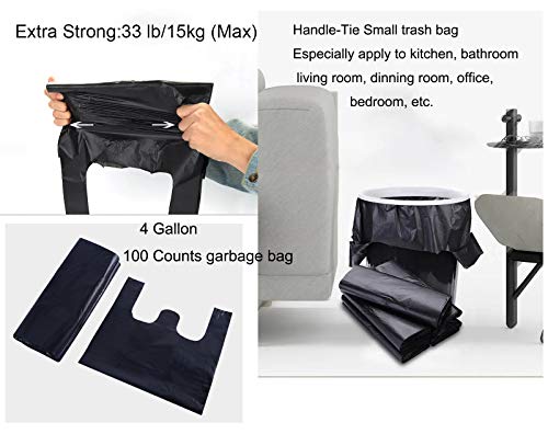 YYaaloa 100 pcs Black Trash Bags with Handles - 14x22 Super Thick 1.8mil Plastic Rubbish Bags for Office, Picnic, Kitchen, Bulk Use