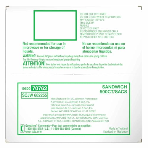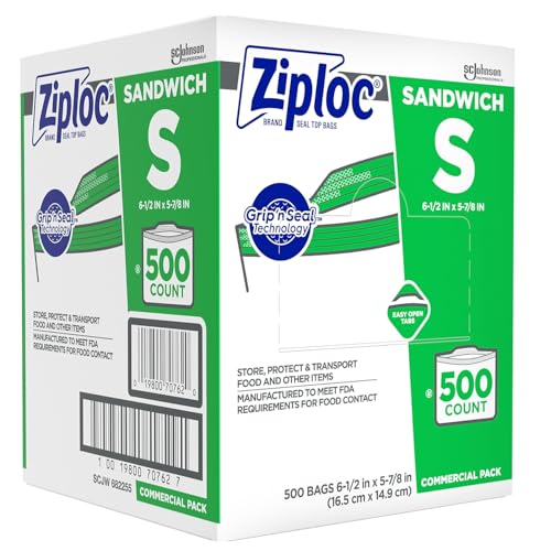 Ziploc 682255 Resealable Sandwich Bags, 1.2mil, 6 1/2 x 6, Clear, Box of 500