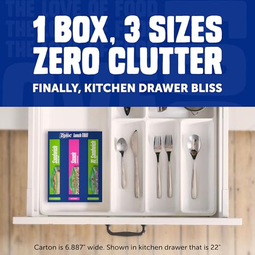 Ziploc Storage Bags Variety Pack, 190ct Total, 42ct Storage Gallon and 48ct Storage Quart, 50ct Sandwich and 50ct Snack