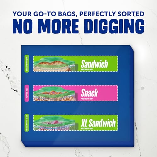 Ziploc Sandwich and Snack Bags with EasyGuide Texture, Plastic Storage Bags with Grip 'n Seal Technology, 105 Bags Total
