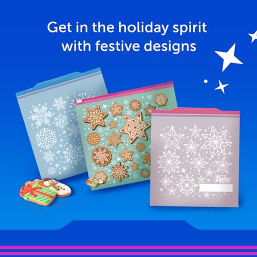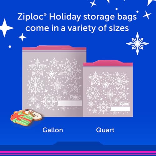 Ziploc Gallon Food Storage Bags, Grip 'n Seal Technology for Easier Grip, Open, and Close, 120 Count, Holiday Designs