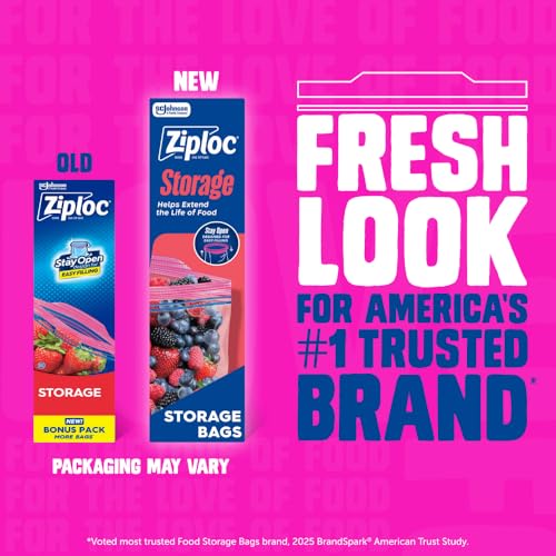 Ziploc Sandwich and Snack Bags with EasyGuide Texture, Plastic Storage Bags with Grip 'n Seal Technology, 105 Bags Total