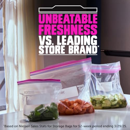 Ziploc Quart Food Storage Slider Bags, Power Shield Technology for More Durability, 42 Count