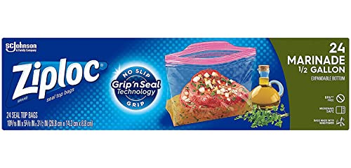 Ziploc Marinade Expandable Bottom Bags, 1/2 Gallon 24 ea (Pack of 6)