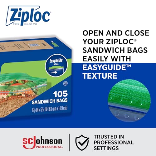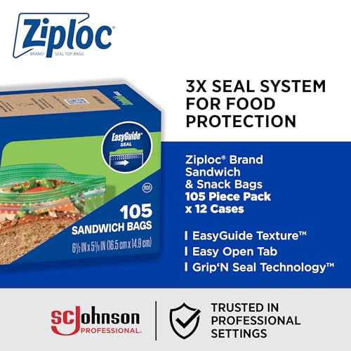Ziploc Sandwich and Snack Bags, Easy Open and Close, Plastic Food Storage Bags, 105 Bags Total (Packaging May Vary), Pack of 12