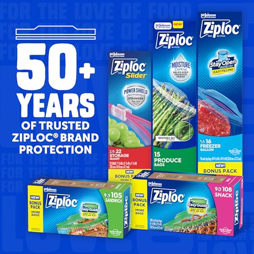Ziploc Sandwich and Snack Bags with EasyGuide Texture, Plastic Storage Bags with Grip 'n Seal Technology, 105 Bags Total